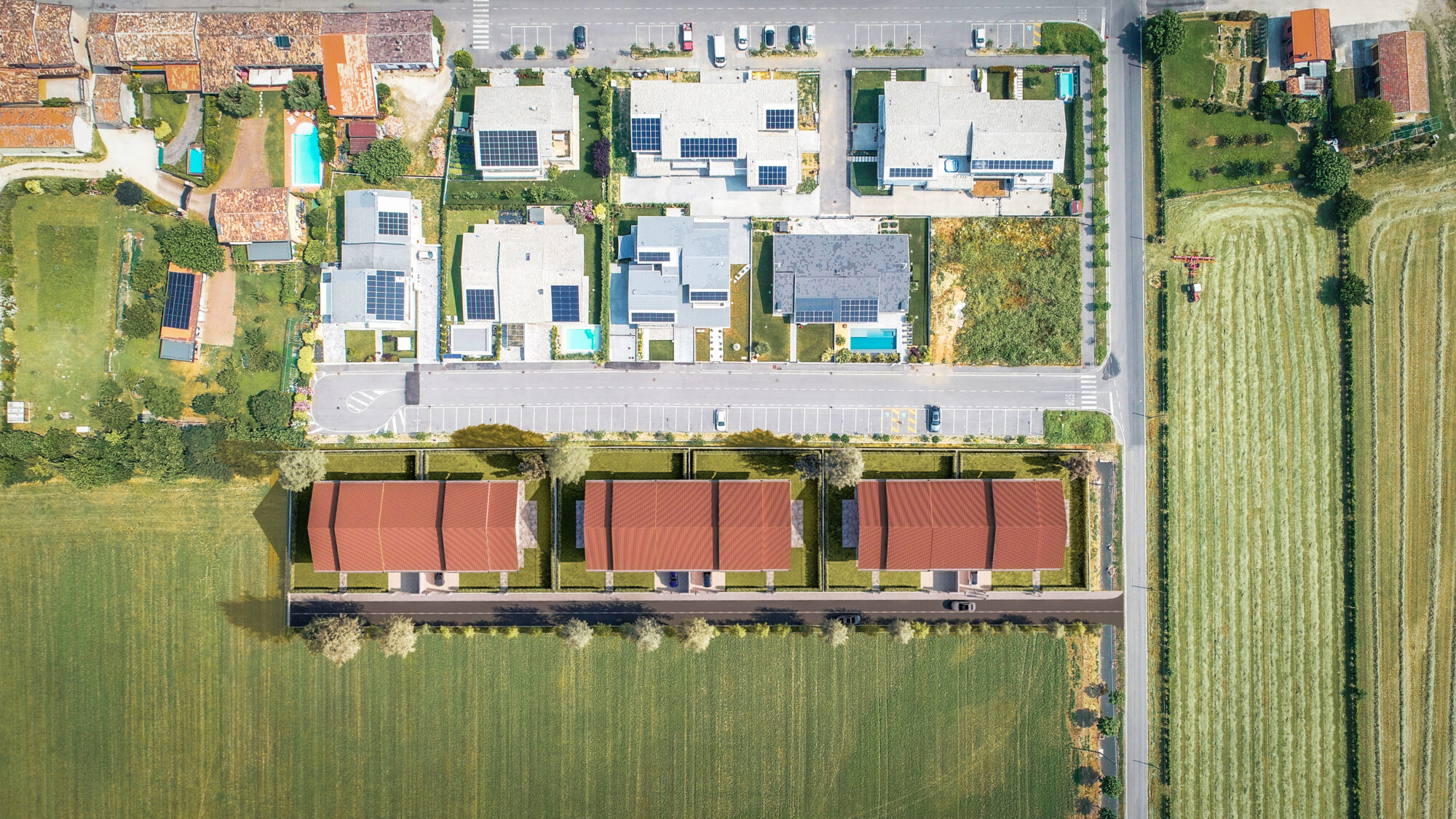 Situato al margine dell’abitato, il piano di lottizzazione completa il tessuto urbano esistente con sei nuove unità abitative che fungono da cerniera tra la zona residenziale consolidata e il paesaggio agricolo.