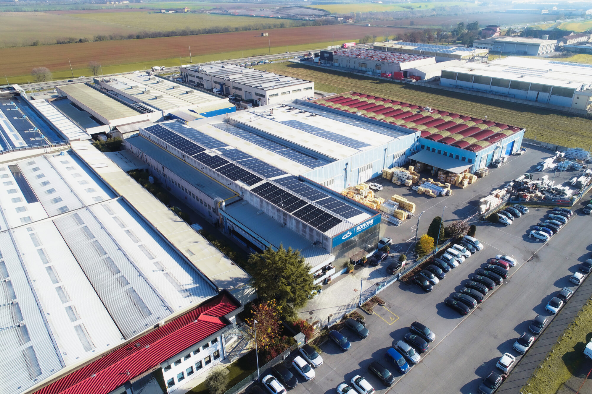Con questo intervento di ristrutturazione integrale e di significativo ampliamento si è avviato un processo di riqualificazione complessiva dell’intero complesso industriale, che ha interessato sia l’involucro edilizio sia gli impianti. Le opere hanno incluso il rifacimento delle coperture con materiali ad alte prestazioni, l’adeguamento strutturale e l’ottimizzazione degli spazi produttivi, oltre all’installazione di un impianto fotovoltaico esteso sull’intera superficie disponibile.